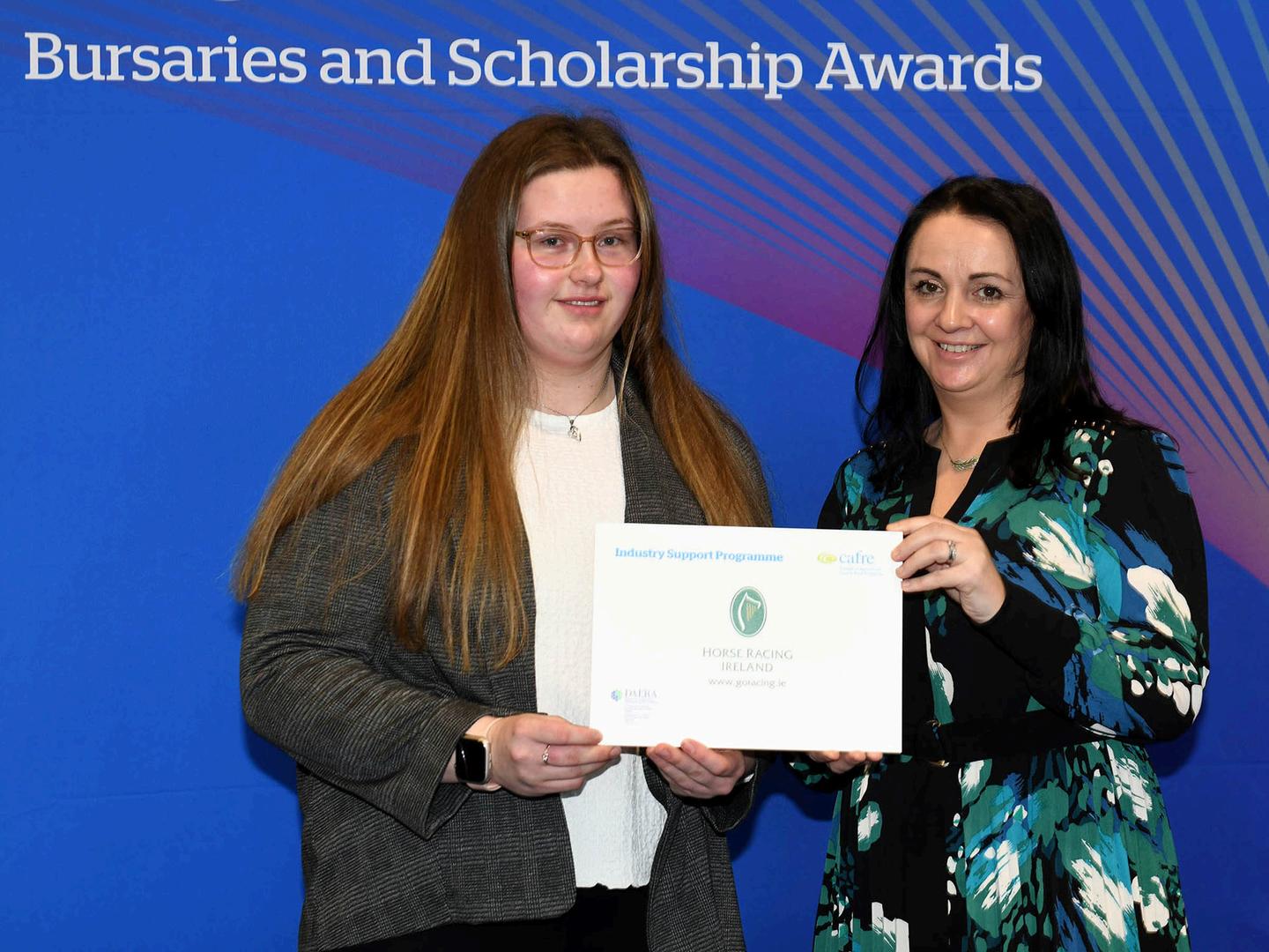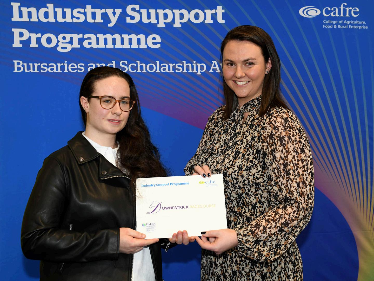 Rachael Foster was presented with the Derrinstown Stud Bursary by Chris Bogue s (CAFRE Lecturer). Rachael from Carrickfergus is studying for a Foundation Degree in Equine Management at Enniskillen Campus