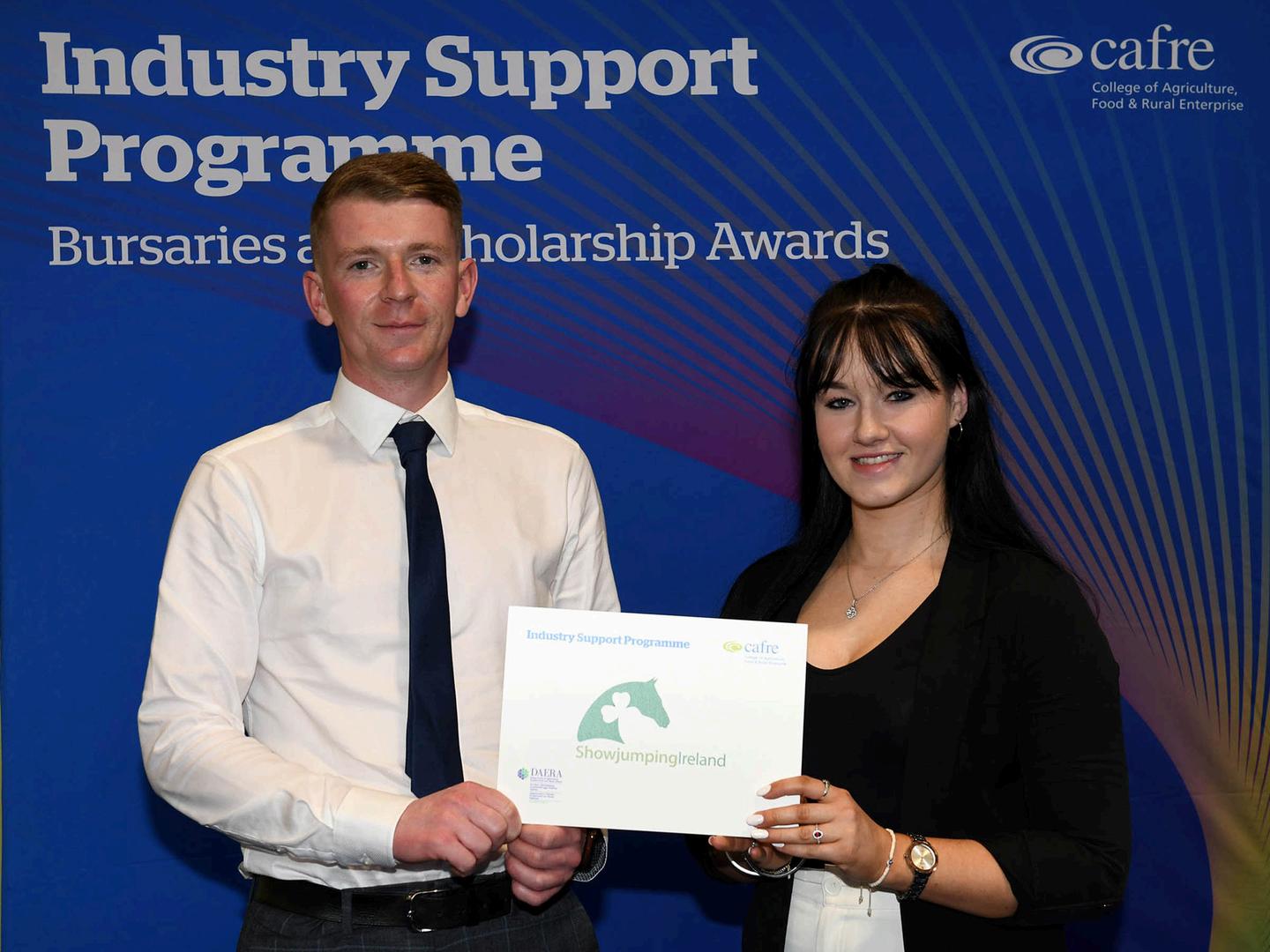 Maria Dooley presented the Horse Sport Ireland Bursary to winning student Laoise McManus Laoise from Drumshanbo, Co Leitrim is studying for an Honours Degree in Equine Management at CAFRE Enniskillen Campus