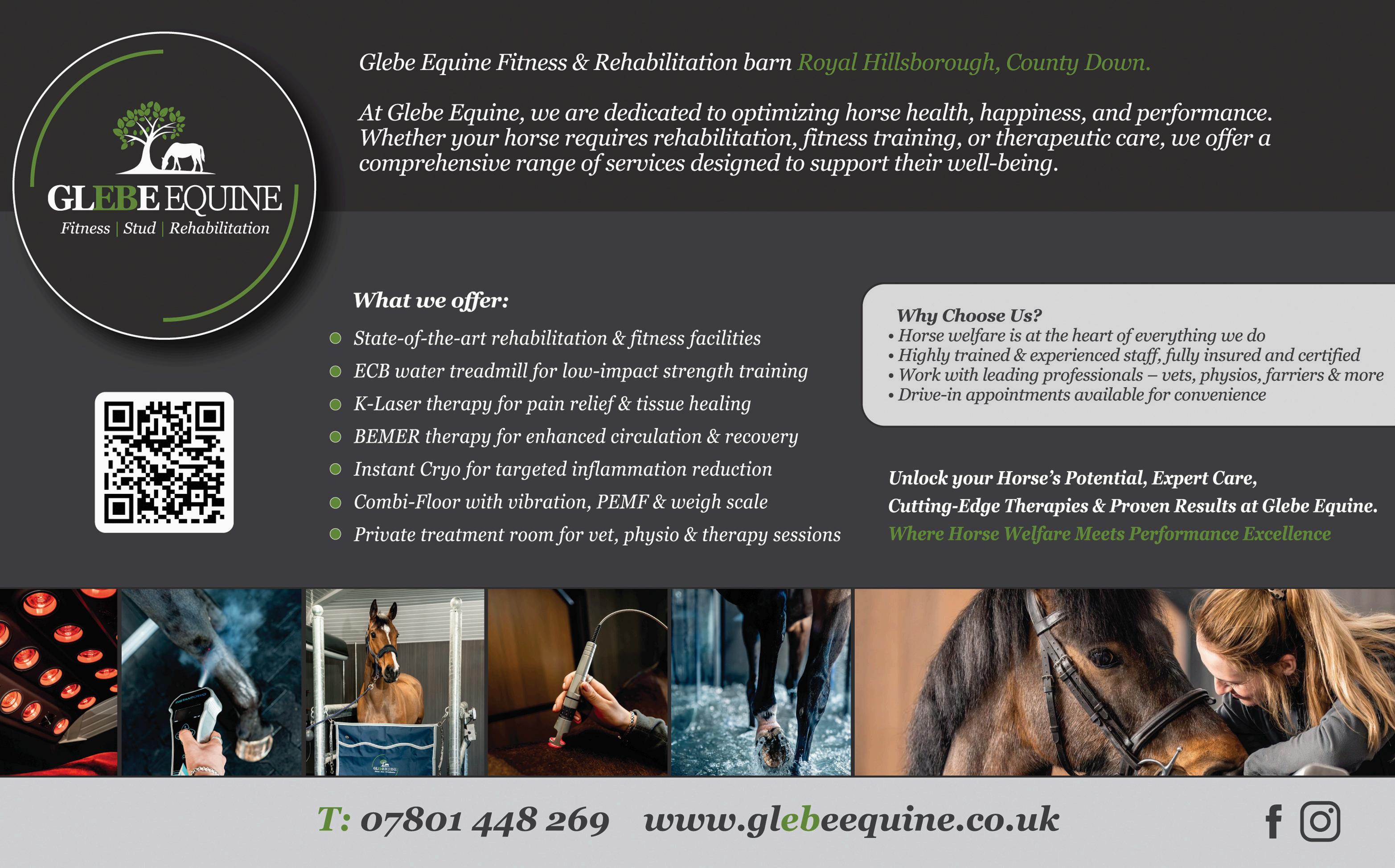 Glebe Equine, Glebe Road, Hillsborough, offersacomprehensivesuiteoftherapies andprogramstailoredtomeetthediverseneedsofequineathletesandcompanions alike Whether a horse is recovering from an injury, undergoing fitness training, or simply requiring therapeutic care, Glebe Equine provides a supportive environment andadvancedmodalitiestopromotetheirwell-being.