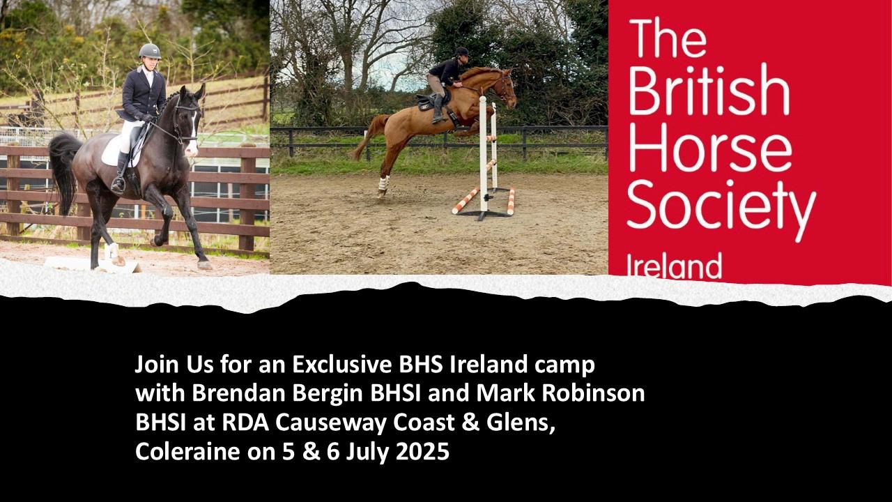 Time is running out to book your place at the exclusive BHS Ireland Camp with Mark Robinson BHSI and Brendan Bergin BHSI at RDA Causeway Coast & Glens near Coleraine, from Saturday 5 July to Sunday 6 July 2025. Book your place now https://buytickets.at/bhsireland/1651834