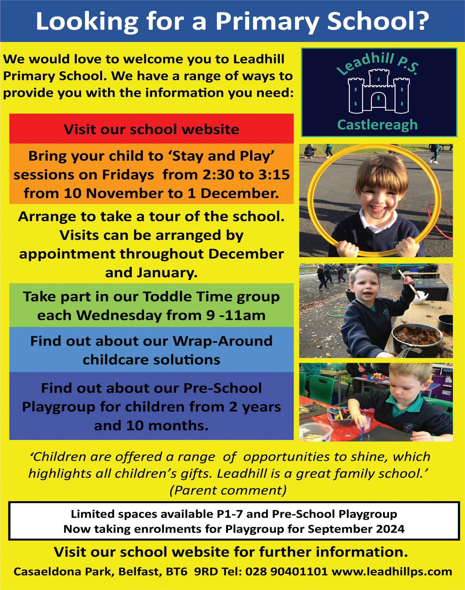 I look forward to continuing to provide the best possible opportunities for our pupils with a rounded educational experience where pupils leave P7 fulfilling their potential and prepared for the