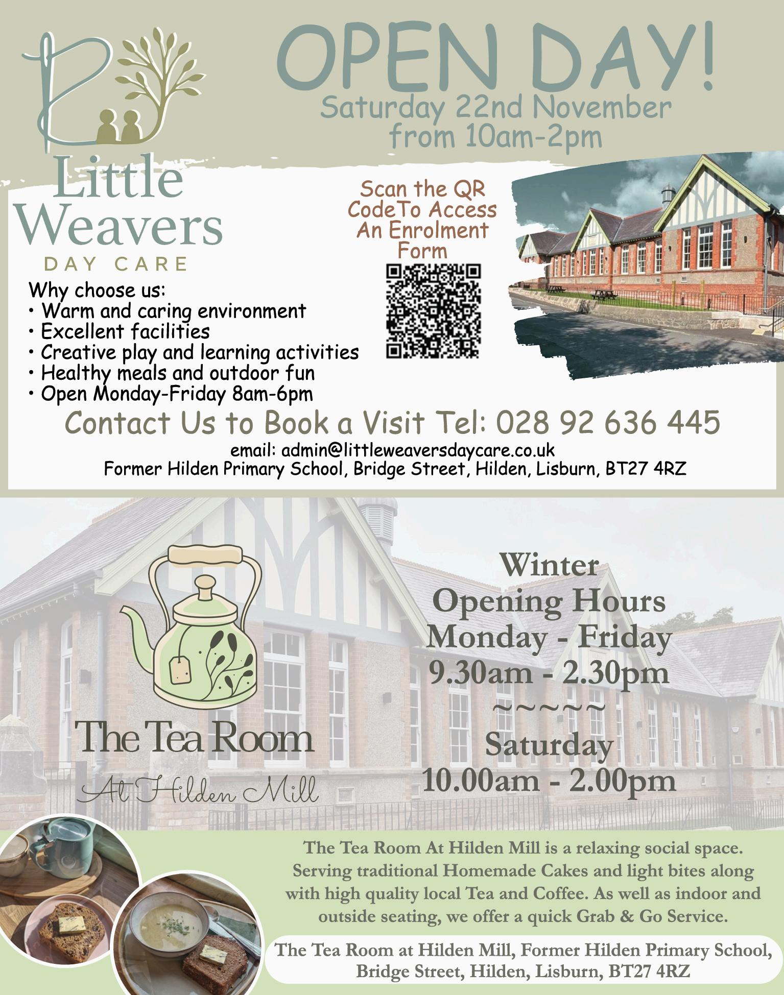 Adding to the community offerings is The Tea Room At Hilden Mill, also a new social enterprise The Tea Room promises to be a "relaxing social space " serving traditional homemade cakes and light bites along with high-quality local tea and coffee With both indoor and outside seating, it offers a perfect spot for locals and visitors including those using the nearby Lagan Tow Path to gather This gathering space is set to become a valuable social asset, reinforcing the building's role as a community focal point