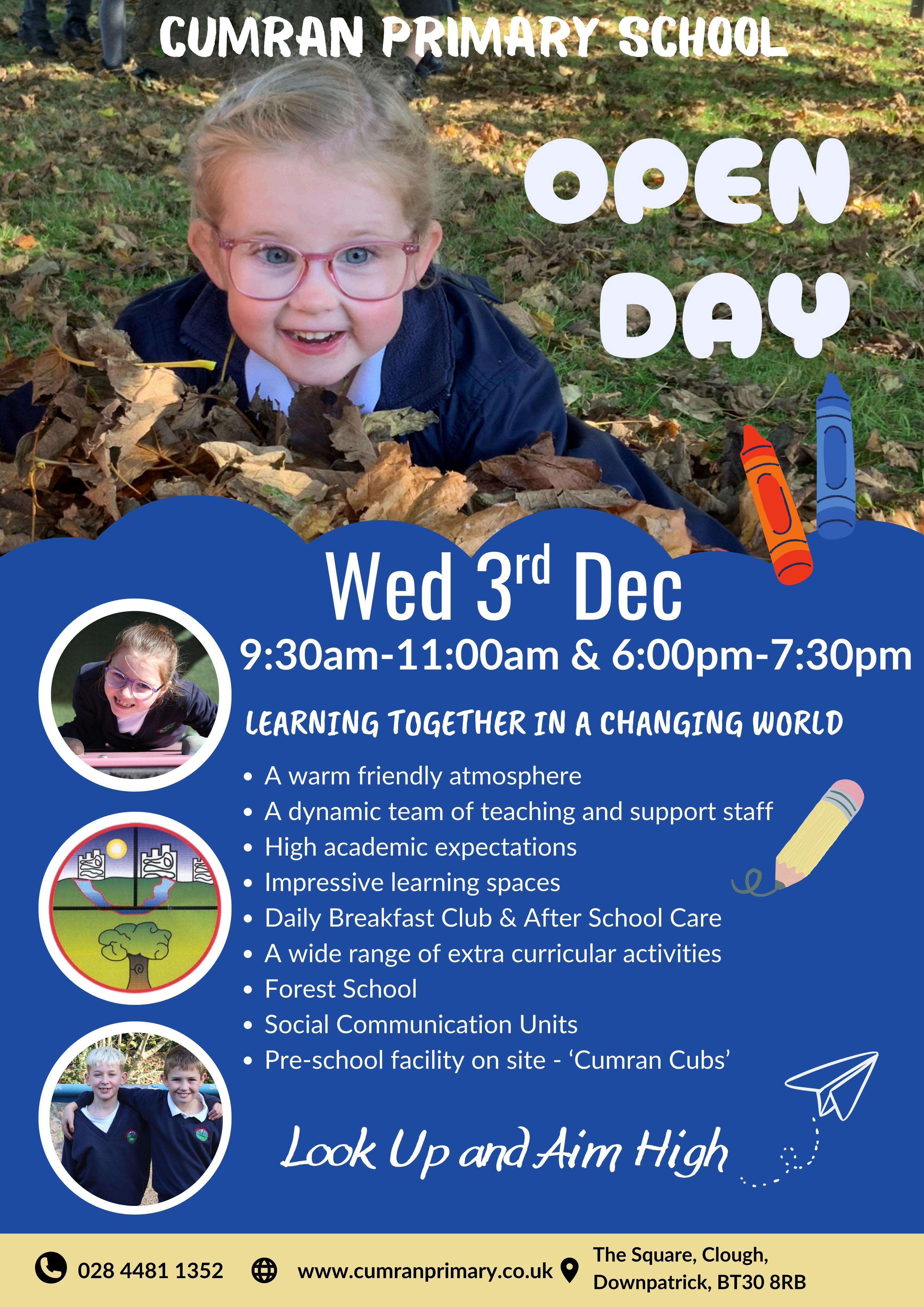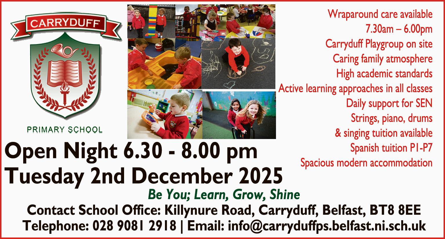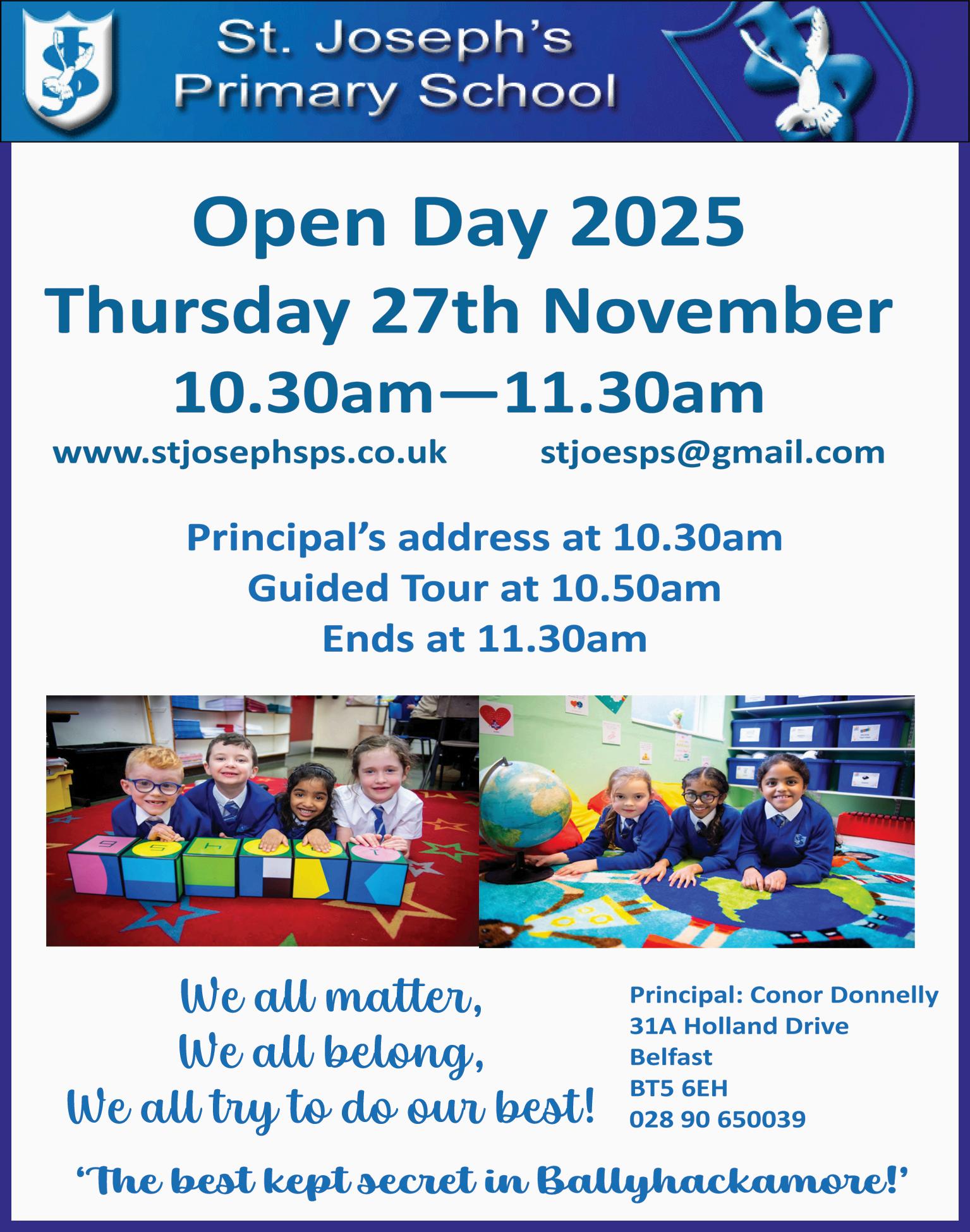 For families considering enrolment for their child in Nursery or Primary 1 for September 2026, the school is holding an Open Day on Tuesday 2nd of December 2025. Please call our school office on 028 9751 0407 to arrange a tour that day. If this date is unsuitable, families are encouraged to contact the school office on to arrange a personalised tour at a different date and time This ensures that every interested family has the opportunity to experience what Academy Primary School & Nursery Unit has to offer. For more information, you can visit the school's website at www.academyprimary.com.