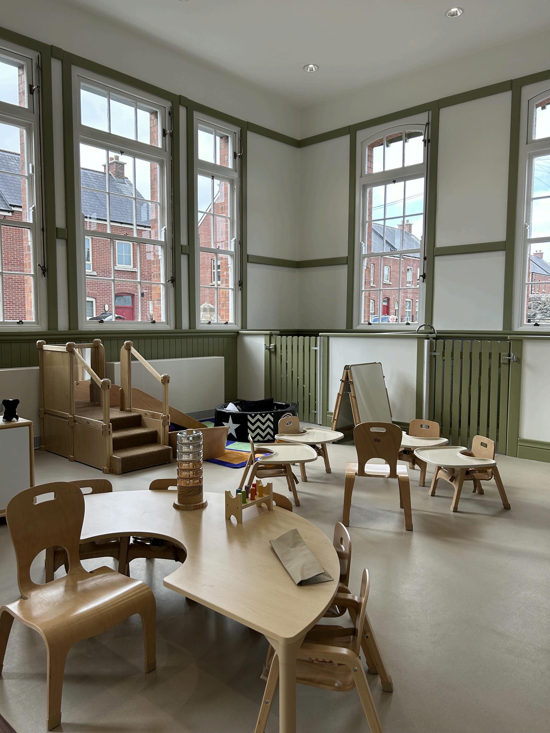 The beautifully restored building now hosts Little Weavers Daycare, a new social enterprise providing much-needed high-quality childcare services As advertised in the attachment, the daycare offers a warm and caring environment, excellent facilities, creative play and learning activities, and healthy meals and outdoor fun, operating Monday to Friday from 8am to 6pm The establishment of this facility reinstates the building's original purpose as a place of learning, securing a bright future for the area ' s youngest residents
