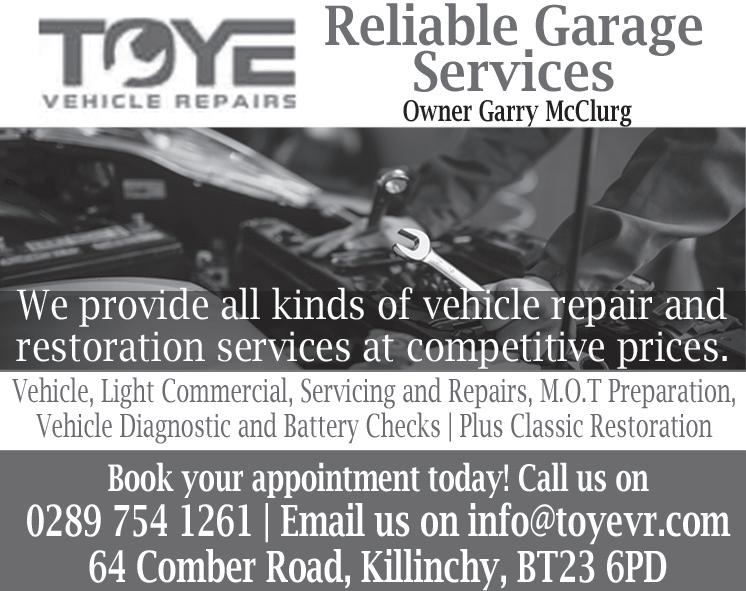 Page 20 The Ards Advertiser Issue 212 - Support Local Searching for roller garage doors that offer unmatched quality at unbeatable prices? Then look no further than Garolla, the UK’s first nationwide roller garage door installer. Transform the appearance of your exteriors and improve the security of your home all in one by updating to a Garolla garage door. Handmade by a team of skilled craftsmen, every Garolla garage door is made from only the very best materials and to your home’s exact specifications. From start to finish you will only work with your own local installer, guaranteeing no pushy salesmen in sight. As well as installing your garage door, your local installer will also conduct the initial survey of your property and will always be on hand to answer any questions you might have. Offering style as well as substance, Garolla electric garage doors are available in 21 colours and come in two different slat sizes to perfectly fit any opening. Avoid any hidden charges Declan Murray Auto Repairs celebrates 10 years in Business Declan Murray is a Ballygowan based mechanic with a wealth experience in the industry. Having spent a career diligently servicing vehicles in the Ballygowan area, Declan Murray Auto Repairs have built a stellar reputation for the high standard of their work and their exceptional customer service – establishing themselves as the premier mechanic in the area. Visit their Yell page to read the range of exceptional reviews from satisfied customers. Offering a range of services from MOT Preparation to full servicing and vehicle diagnostics to mobile vehicle repairs, Declan Murray Auto Repairs have got you covered. Holding customer care at the very centre of their business, they over 24 hour Breakdown Recovery to ensure that they are available when their customers need them most. To book your appointment today, call Declan on 07967 882554. MINI MARVELS ARRIVE FOR SPRING As a 3-door model in its fifth generation, the all-electric MINI Cooper underscores the brand’s tradition with its hallmark MINI design and stands for urban driving fun. The new MINI Countryman has grown in external dimensions and offers its passengers