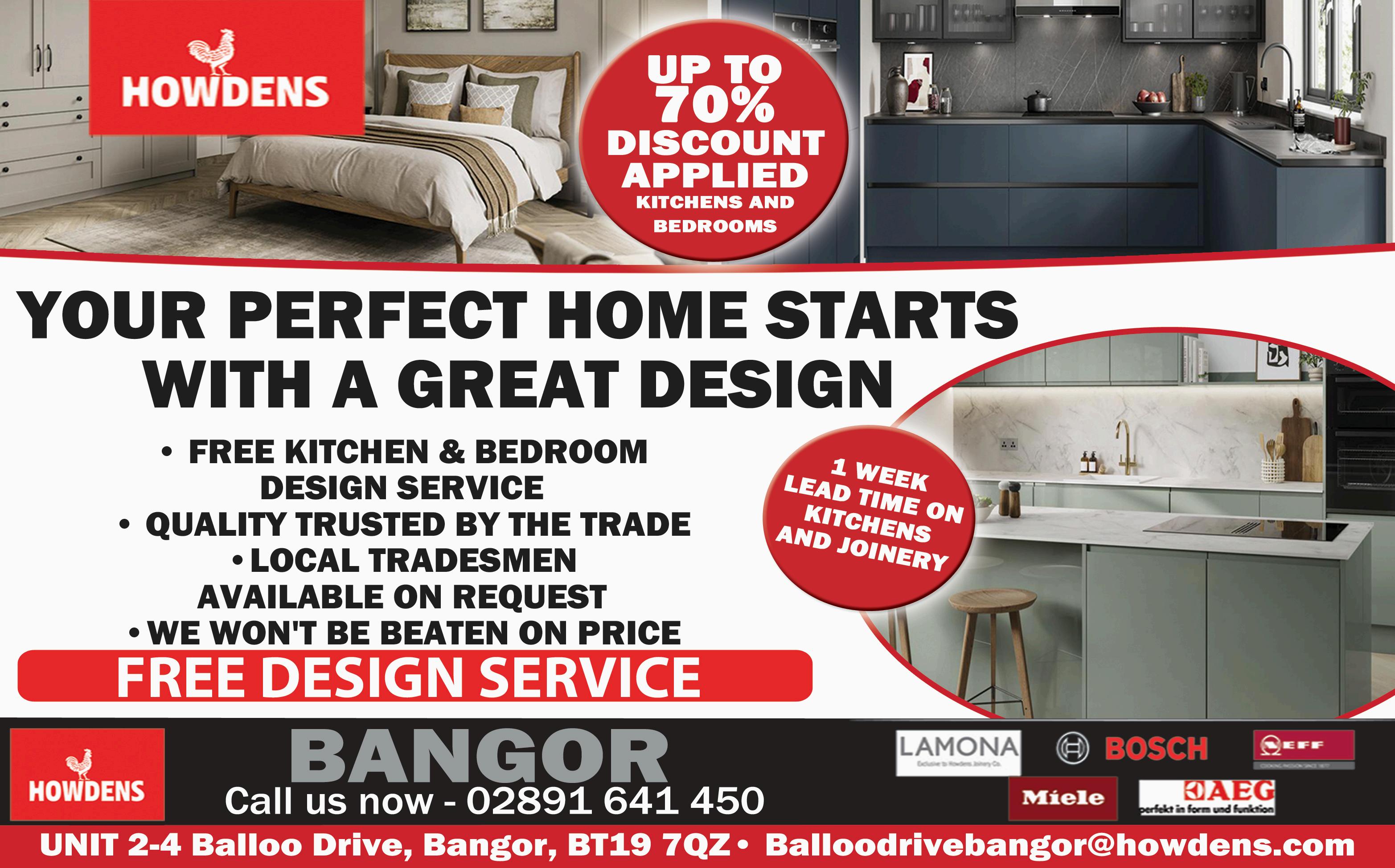 Howdens Newtownards at Unit 1, Portaferry Road, BT23 8NN Email newtownards@howdens.com or see www.howdens.com Tel: 028 9124 2320.