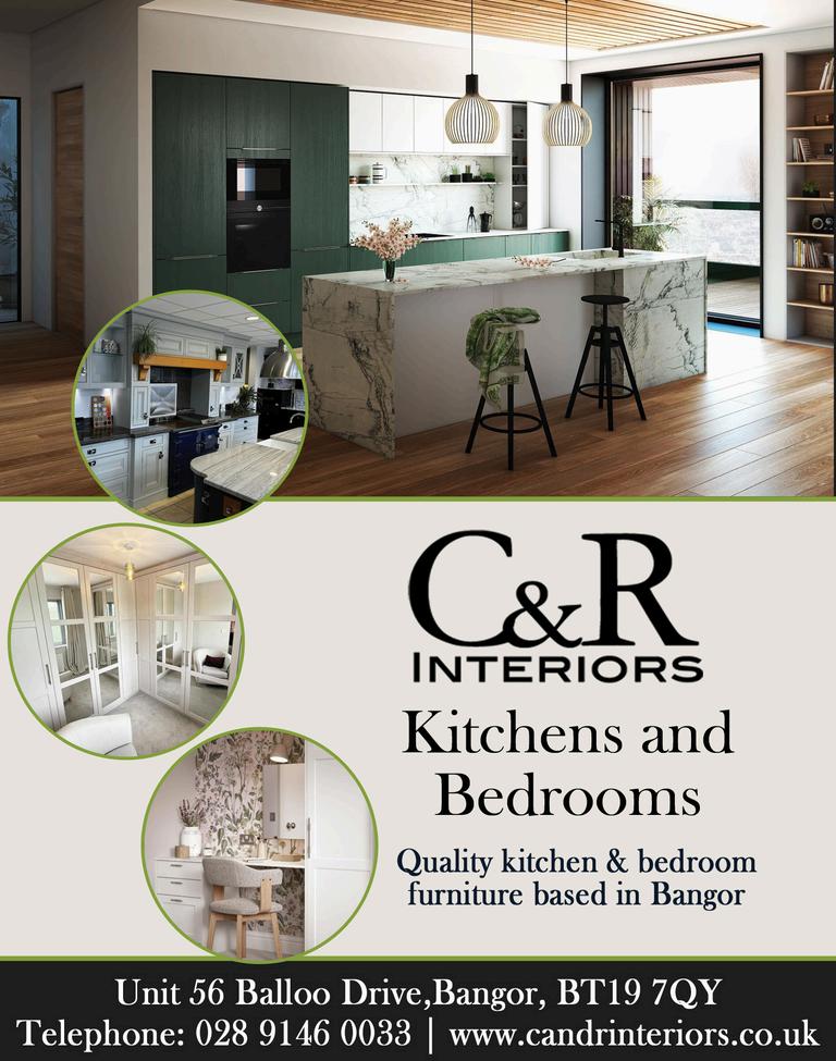 C&R interiors Kitchen & Bedrooms Showroom is at Unit 56 Balloo Drive, Bangor Telephone: 028 9146 0033
