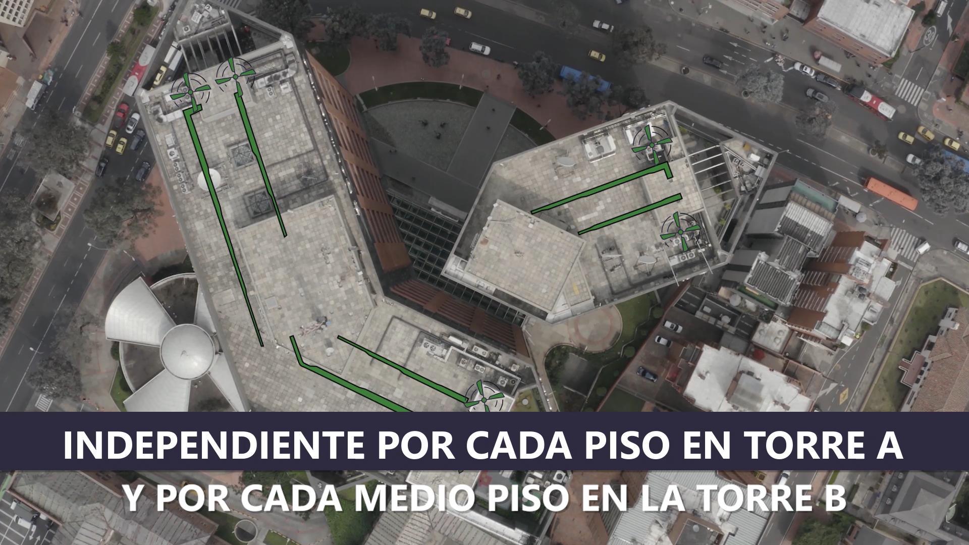 El edificio cuenta con una central de seguridad que opera 24 horas al día todos los días del año y controla el CCTV, el Sistema Integrado de Seguridad Física e Industrial a través de un software especializado que administra el sistema de detección temprana de incendios y humos con sus detectores de doble tecnología (térmicos y foto eléctricos), speaker, strobos, para manejo audiovisual de emergencias, altavoces para perifoneo en todas las áreas, pulsadores manuales de emergencias, sensores de monóxido en los sótanos, citófonos para emergencias y manejo de alarmas, control de apertura de puertas, dicho sistema lo integran más de 3.600 puntos en el inmueble, además controla el funcionamiento de los diferentes equipos electromecánicos y la iluminación de las zonas comunes, etc.