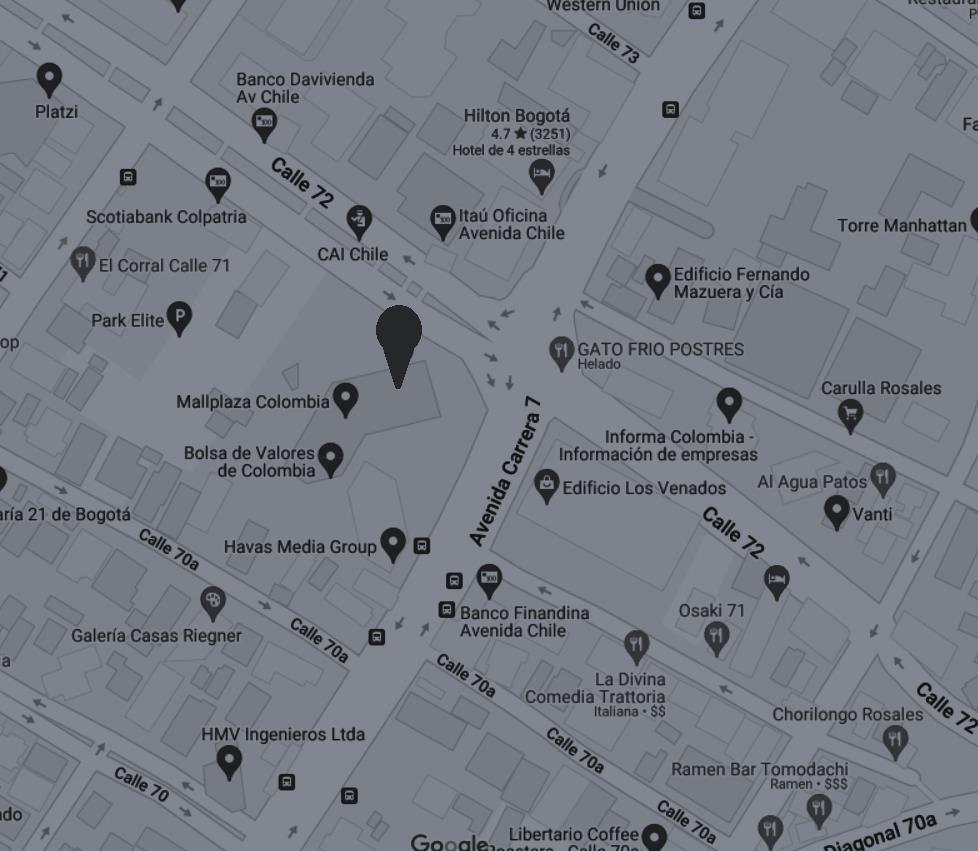 El sistema vial de la zona lo comprenden las siguientes vías metropolitanas: Carrera 7, Carrera 5, Carrera 9 y Calle 72 (Av. Chile).