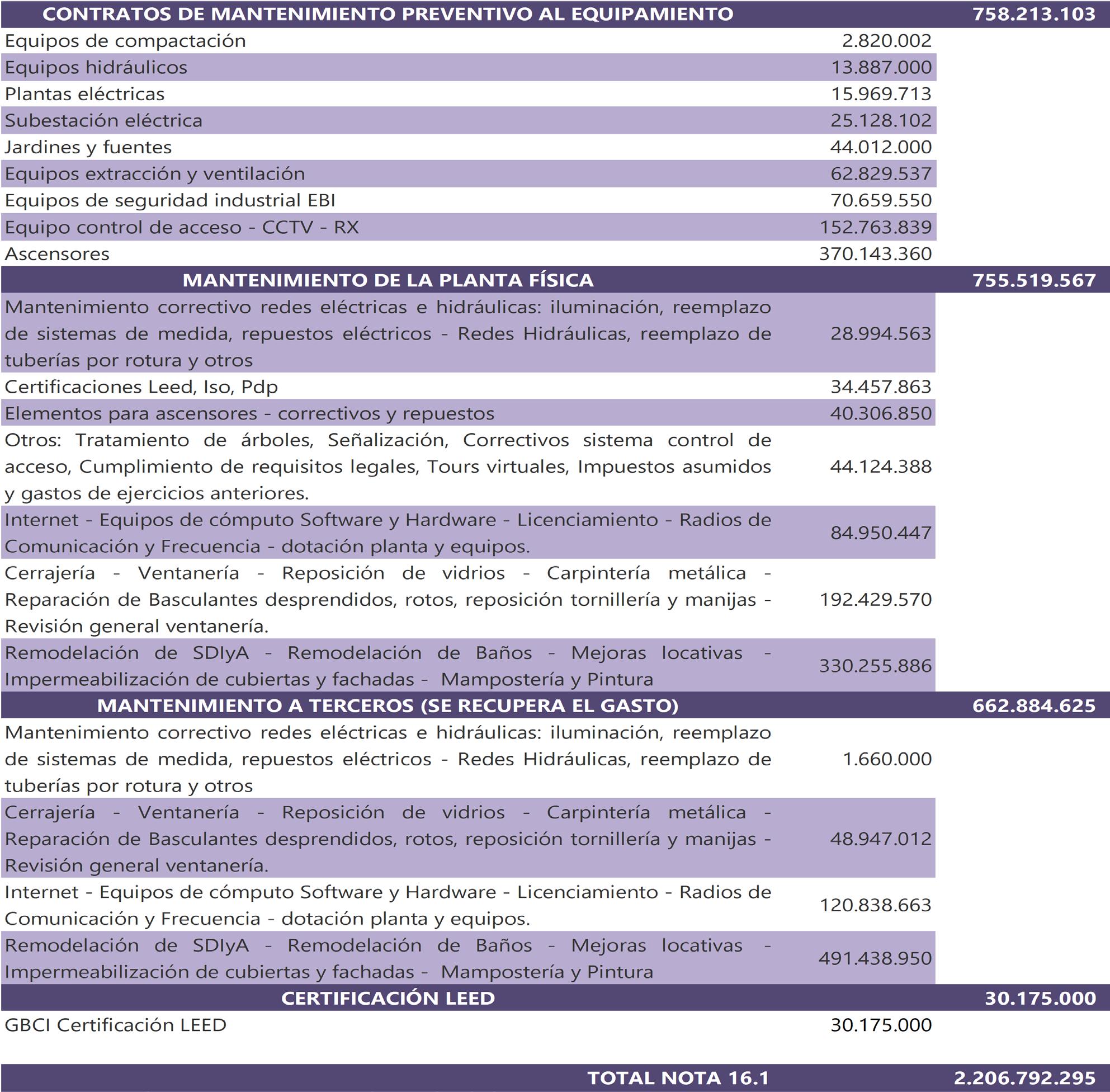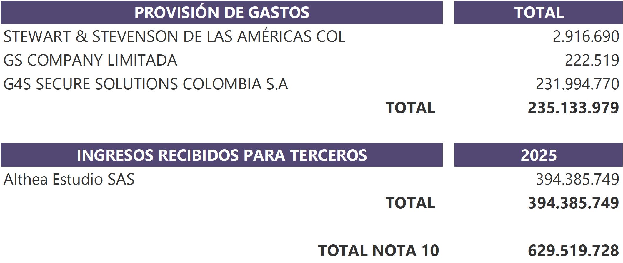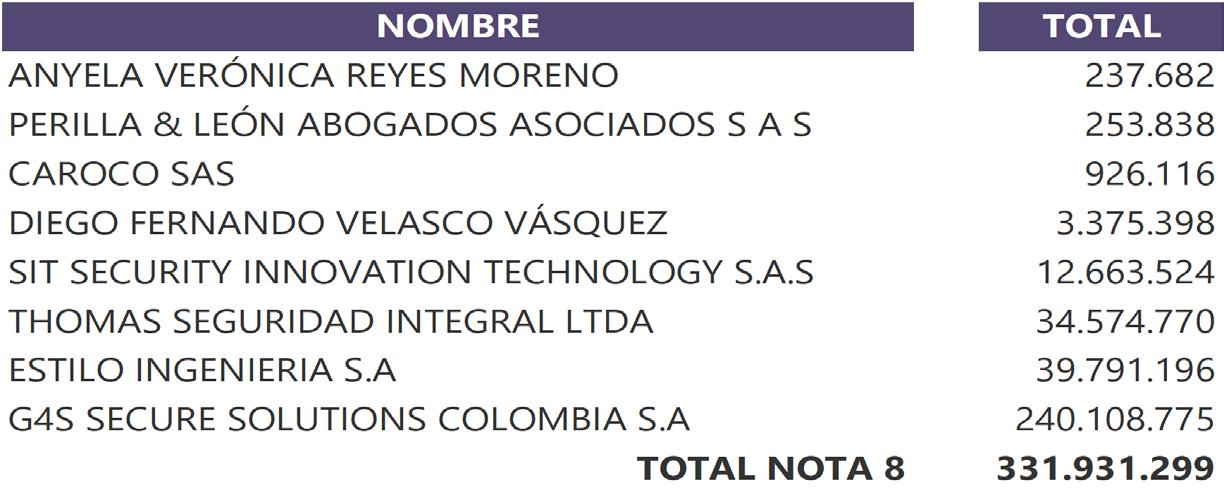 Corresponde al valor provisionado de los contratistas que no emitieron sus facturas en el mes de diciembre; y las facturas emitidas a Fundación Julio Ramirez, Sociedad Inmobiliaria Esferd SAS e Inversiones Piemonte SAS, por la remodelación de los baños.