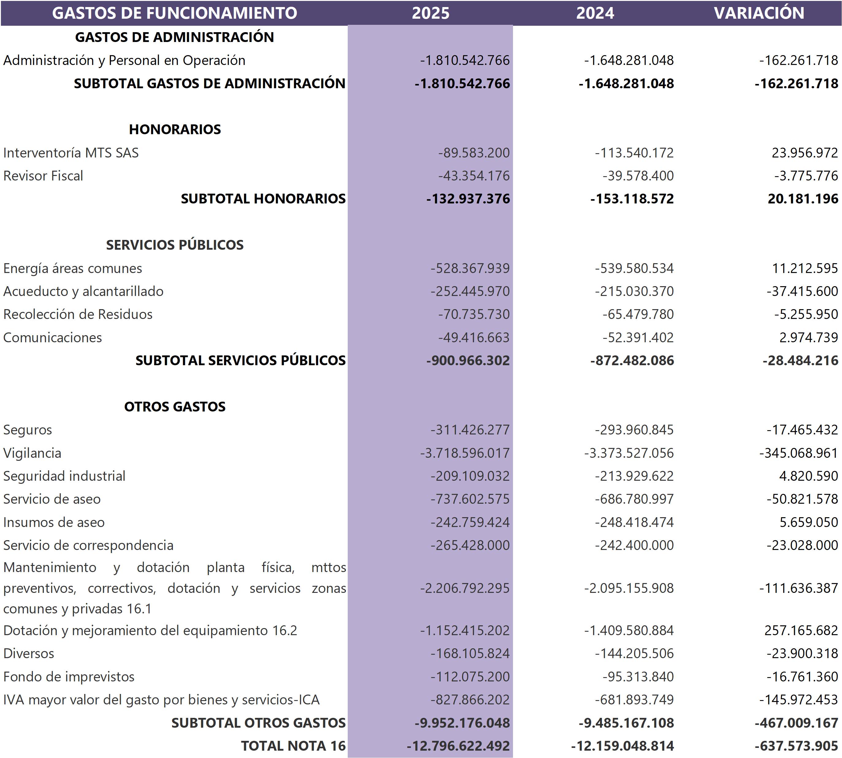 Como plan de mejoramiento para el año 2026, se analizó el alto impacto generado por las diferentes reformas laborales y el incremento del 23% del SMMLV y se tomaron medidas prudentes, soportadas en el uso de la tecnología para sustitución de algunos servicios, permitiendo mantener los resultados obtenidos en materia de seguridad y lograr racionalizar el gasto.