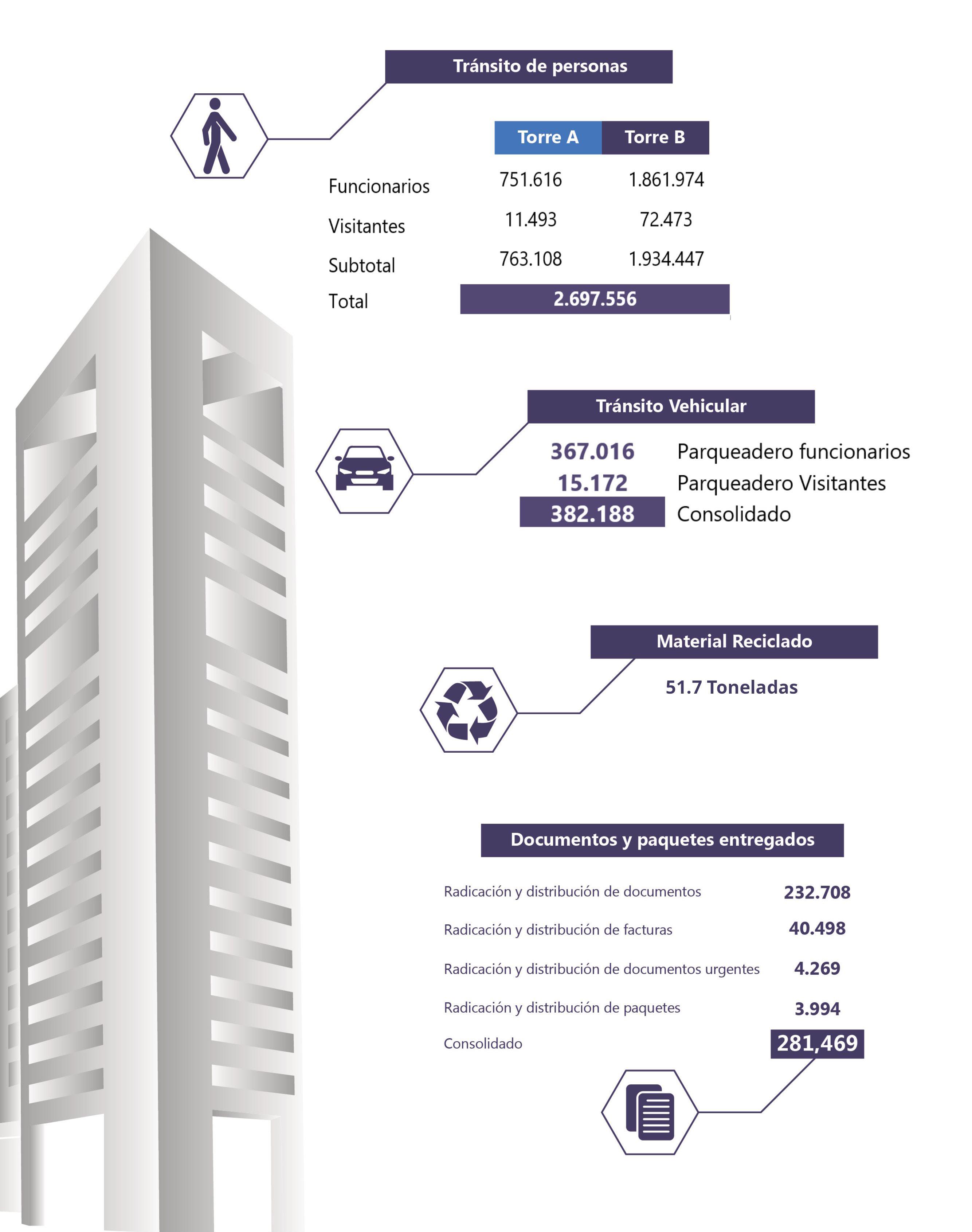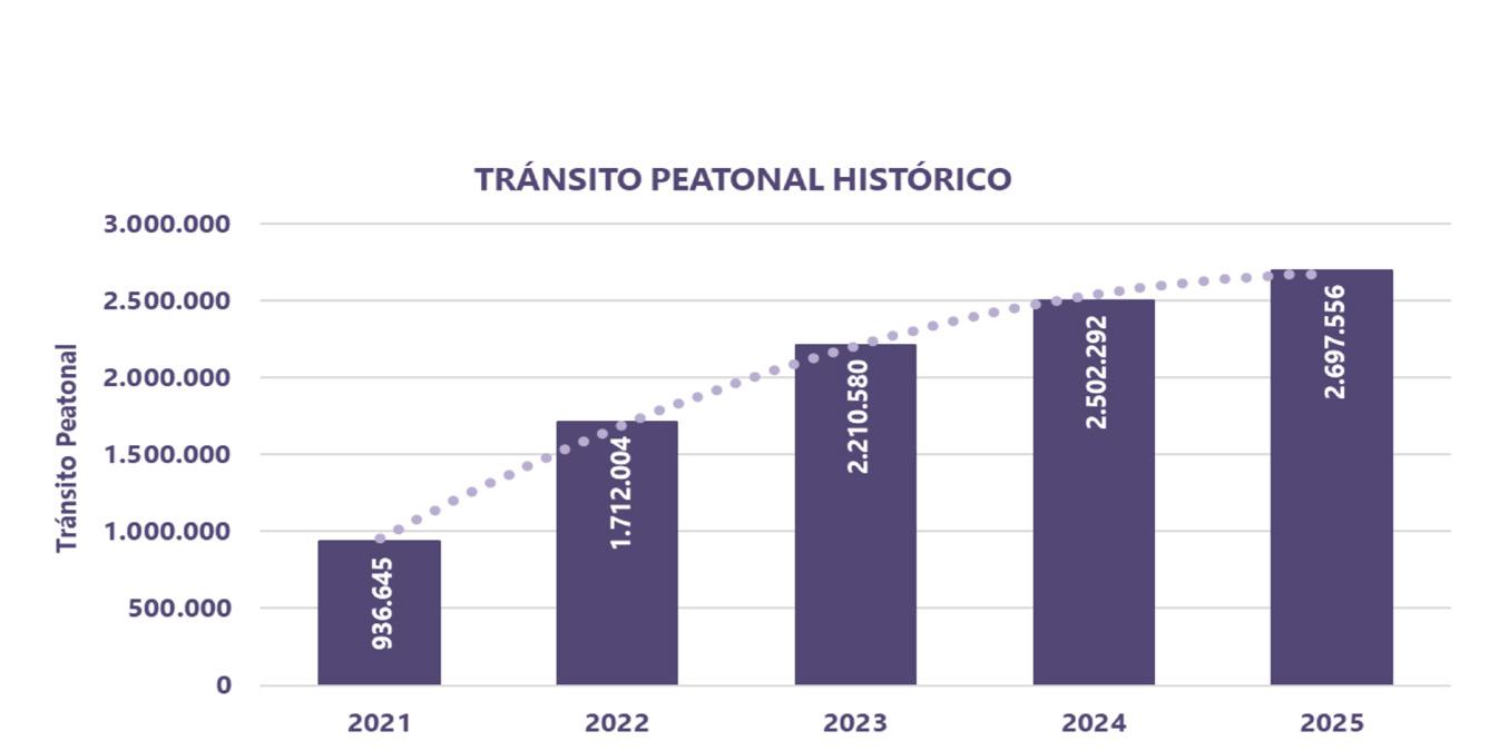 El comportamiento de tránsito peatonal de funcionarios y visitantes registró un incremento del 7,24% comparado con el año 2024. El tránsito por el edificio fue de 2.697.556 personas en el año 2025.