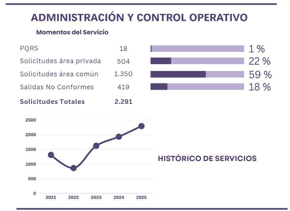 La Administración en compañía del Consejo de Administración, durante el año 2025 adelantó un análisis del modelo de gestión, llevándonos a la trasformación de la operación. Como resultado de este proceso se finalizó el contrato del operador MTS Consultoría + Gestión, para su reemplazo se evaluaron diferentes alternativas de contratación, tanto de operadores externos como de contratación directa, con el objetivo de optimizar costos, fortalecer el control operativo y mitigar riesgos laborales y legales.