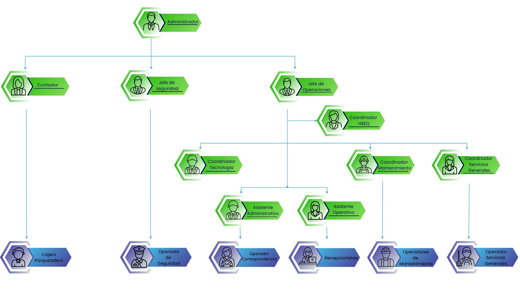 directa de cargos misionales clave con la tercerización especializada de servicios operativos. Bajo este esquema, el edificio asume directamente la gestión de cuatro cargos misionales estratégicos, mientras que los servicios de recepción y taquilla se contratan a través de la empresa de seguridad especializada G4S An ALLIED UNIVERSAL Company, y el personal de mantenimiento se vincula mediante el operador técnico Aliados Estratégicos.