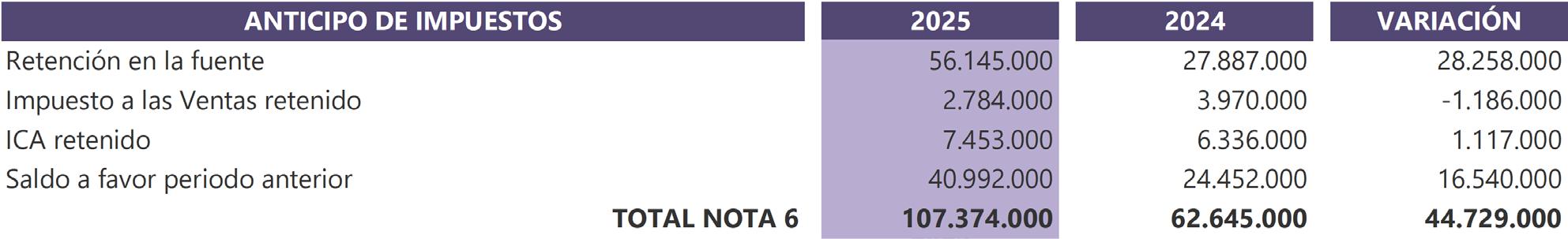 NOTA 6 – ACTIVOS POR IMPUESTOS CORRIENTES