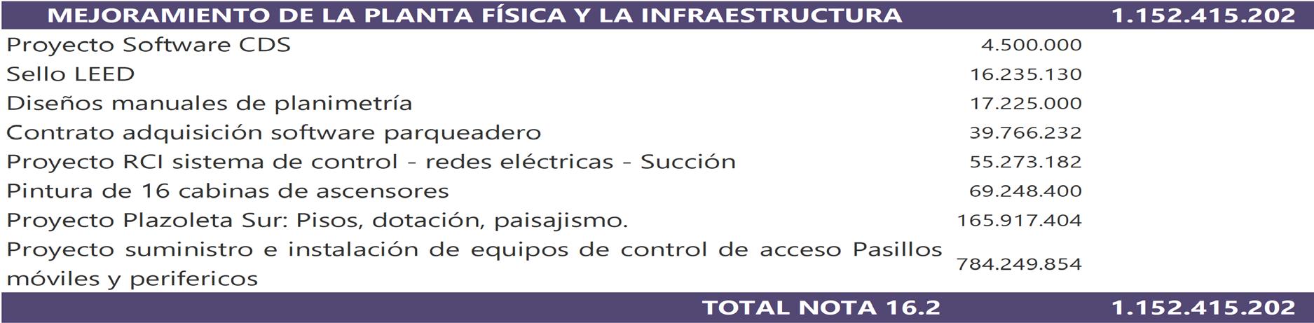 Continuando con el constante mantenimiento y mejoramiento de la infraestructura, la Administración presenta los proyectos a desarrollar, los cuales se ejecutarán en razón a su importancia, prioridad e impacto, contando con los recursos disponibles.