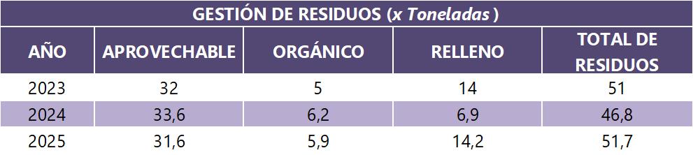 El plan de manejo de residuos se enfocó en la reducción, implementando un programa de reciclaje que fomentó la selección en la fuente, para ello, se dotó a todos los generadores de residuos con bolsas biodegradables de colores, lo que facilitó la identificación temprana de los distintos tipos. Además, se formalizó la disposición de residuos orgánicos, estableciendo un proceso adecuado para su manejo, se mejoró la señalización de los cuartos de residuos y se ofreció capacitación al personal de servicios generales del edificio, asegurando así una gestión adecuada y eficiente de los desechos.