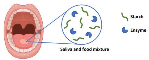 (ii) Name the enzyme in saliva that breaks down starch in the mouth.
