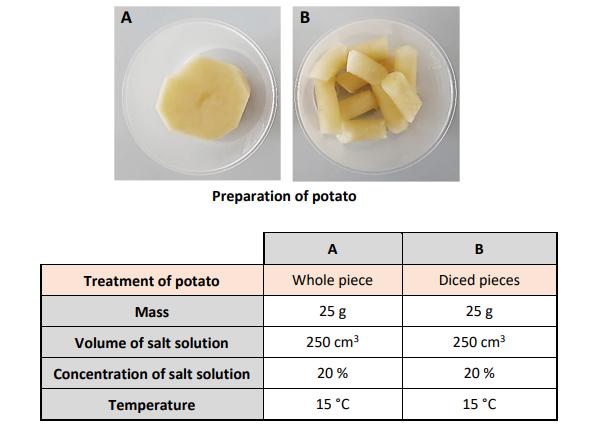 (b) The images and table below show how a student prepared an activity to investigate the effect of surface area on the rate of osmosis.