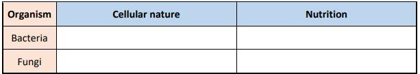 (i) The table below contains statements about bacteria and fungi. Identify which organism is being described by each statement. Put a tick () in the correct boxes.