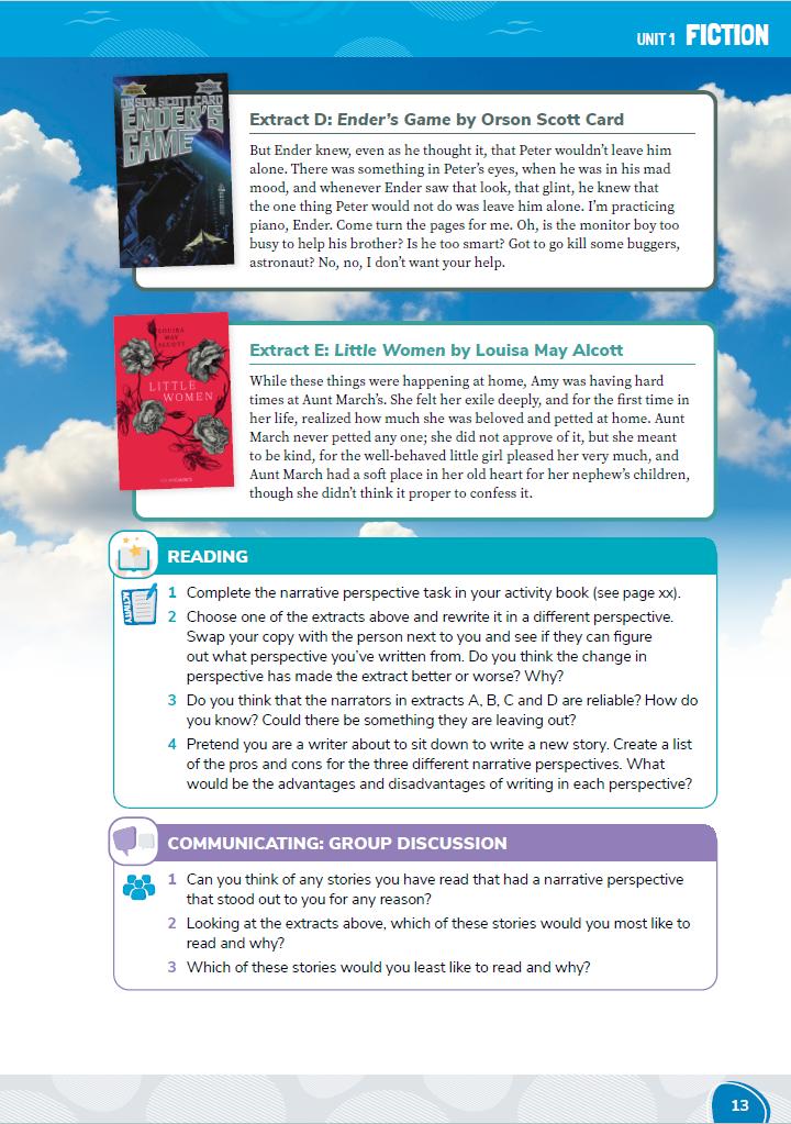 Fresh, exciting and engaging text extracts, both traditional and contemporary, updated and used throughout; flash fiction, two novels, a film and diary entries now included in fiction, film and non-fiction units