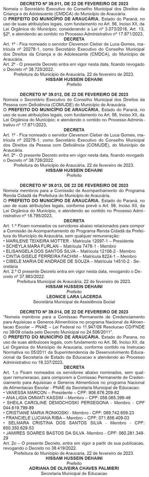 ram definidos os nomes dos deputados Adão Litro (PSD), Gilson de Souza (PL), Marcia Huçulak (PSD), Batatinha (MDB), Professor Lemos (PT), Douglas Fabrício (Cidadania) e Flávia Francischini (União Brasil).