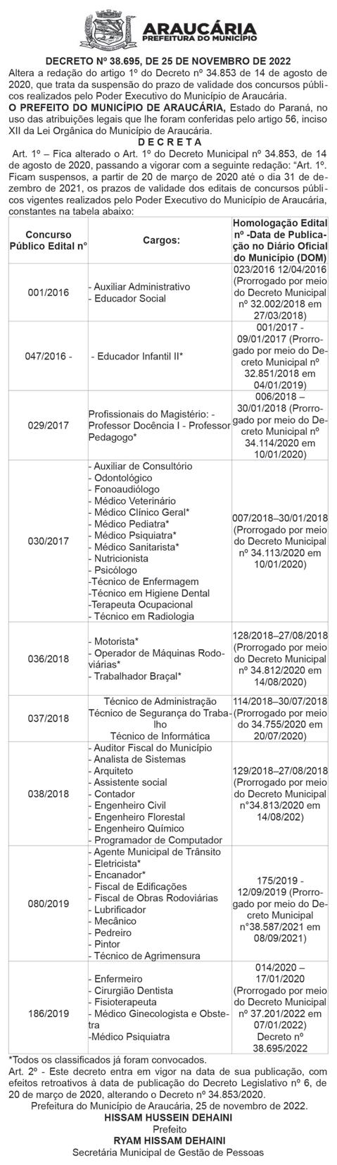 e de cargos equivalentes para o gerenciamento das novas políticas públicas.