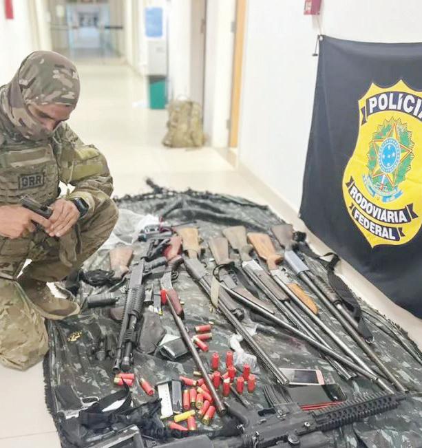 no Estado do Amapá. Agentes federais apreenderam 11 armas com criminosos: espingardas calibre 12mm, um fuzil e pistolas calibre 45, de uso restrito", informou, em nota, o ministério.