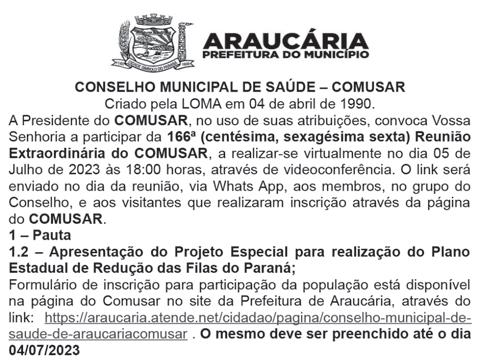 (Fiep). No documento, está a solicitação do repasse de recursos federais já liberados pela União ao município nas áreas de mobilidade, saúde, educação e o pedido para que Curitiba sedie as reuniões preparatórias do G20 em 2024. Greca ressaltou que o governo federal é parceiro indispensável de Curitiba, cidade que consolida, para o Brasil, um grande portfólio de êxito em projetos e obras urbanas que podem ser replicadas. “As cidades brasileiras são o