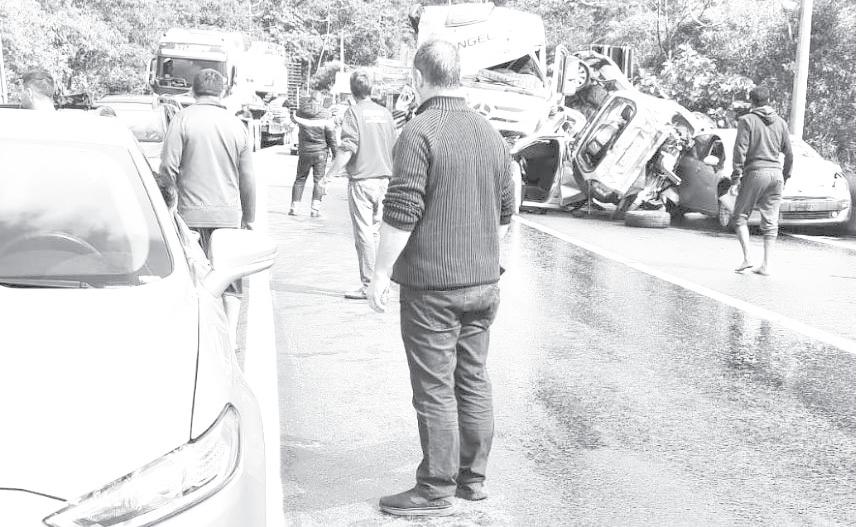 Engavetamento com 15 veículos deixa seis feridos em Guaratuba