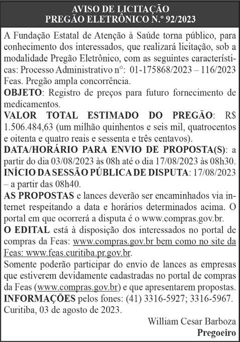 A Prefeitura de Curitiba lançou novo edital de credenciamento para instituições de ensino particulares interessadas em oferecer vagas na Educação Infantil. Inicialmente serão contratadas 13 mil vagas em creches. (Página 5)