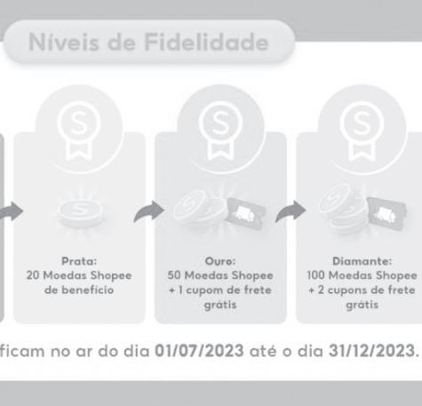 mudar de categoria conforme for realizando compras, passando a ter mais benefícios extras. Atualizado por ciclos, cada um com duração de seis meses, o Programa de Fidelidade Shopee teve o ciclo inicial começando no dia 1º de julho, seguindo até 31 de dezembro deste ano. Neste período, todas as compras valem pontos para a classificação do usuário, desconsiderando as devolvidas, canceladas, eventuais descontos e o valor do frete. n