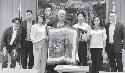Ele presenteou o prefeito japonês com uma miniatura de araucária feita de madeira, um lenço pintado com a gralha azul e as pinhas, símbolo de Curitiba e do Paraná. Em Kakogawa, a comitiva curitibana conheceu projetos de monitoramento de enchentes, com câmeras inteligentes e sensores de baixo custo para controle do nível da água de chuva e vazão dos rios; iniciativas de segurança pública como a implantação de tags nas mochilas de crianças para a segurança no caminho entre a casa e a escola e o sistema de transporte da cidade. n