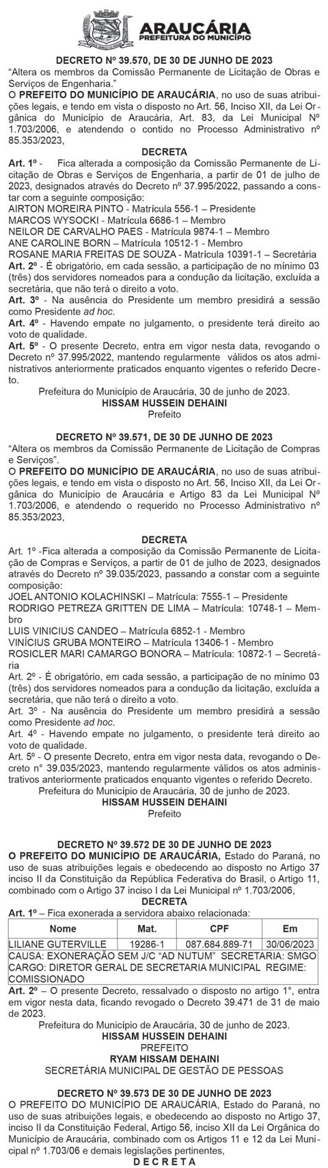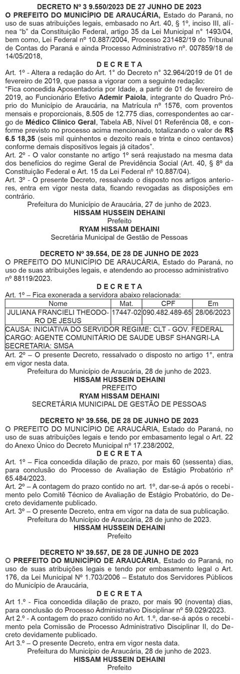 nar. Não tem como acatar tudo, mas o parlamento fez seu papel. Não sei se em algum momento avançamos tanto. Quero parabenizar todos”, discursou o líder do Governo na Assembleia, deputado Hussein Bakri (PSD), após uma composição com a Oposição. “Fizemos o possível, tivemos pequenas vitórias, tivemos algumas derrotas”, resumiu o líder da Oposição, deputado Requião Filho (PT). As mensagens definiram o reajuste geral de 5,79% a ser implementado na folha de cerca de 283 mil servidores ativos e inativos, estatuários e comissionados. Os projetos também promoveram reestruturação de algumas carreiras. n