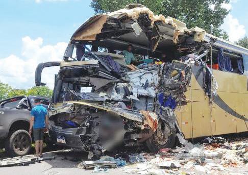 Oito pessoas morreram ontem em um acidente entre uma carreta e um ônibus na BR-174, próximo ao distrito de Caramujo, em Cáceres, a 250 km de Cuiabá (MT). De acordo com a Polícia Rodoviária Federal (PRF), os dois veículos bateram de frente. A polícia informou que a rodovia não foi totalmente interditada e que no local havia controle de trânsito para a