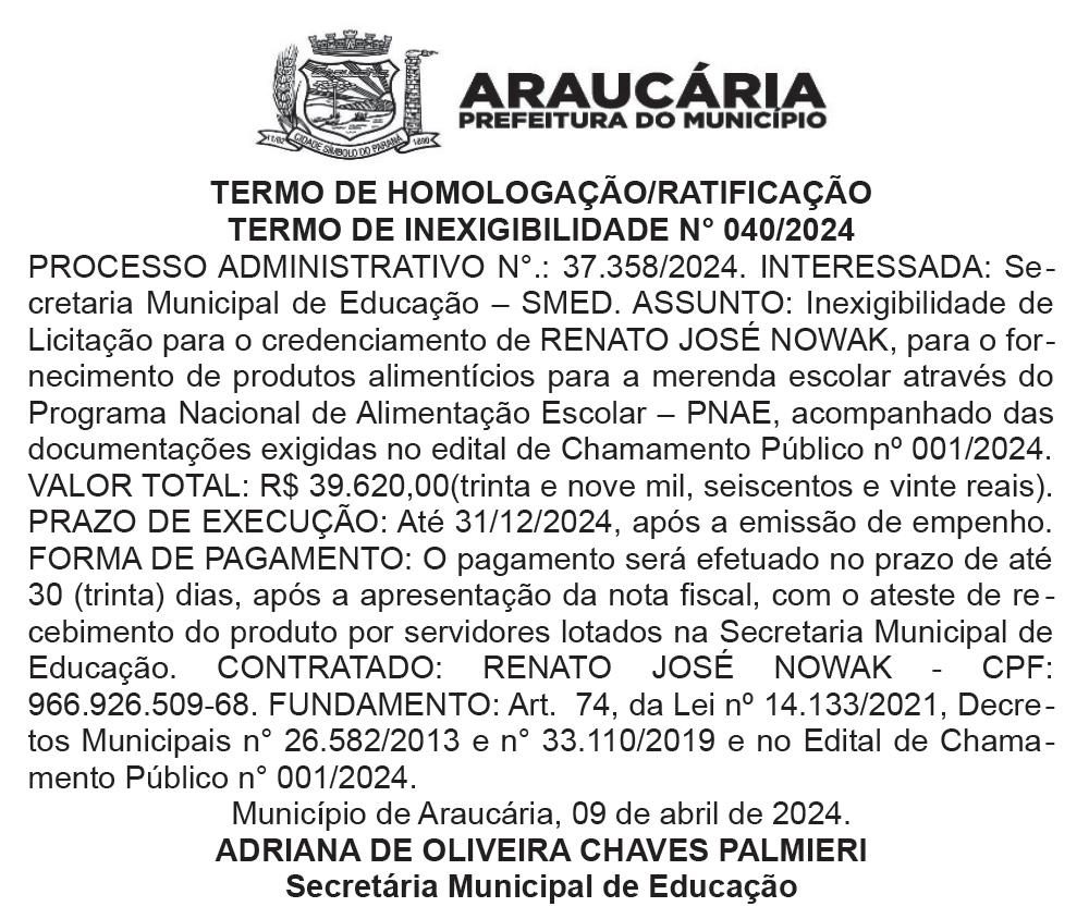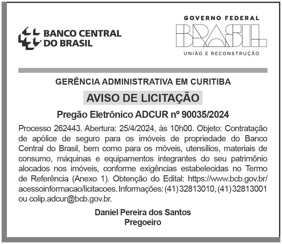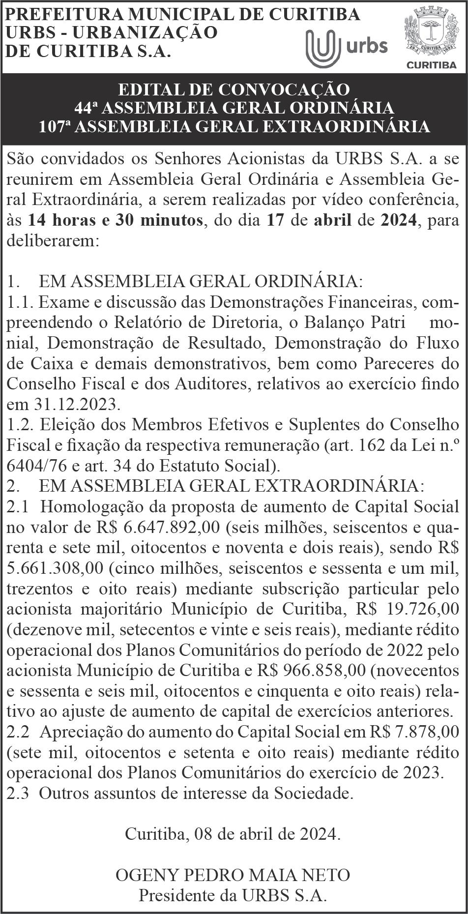 Acesse a publicidade legal pelo link: bit.ly/jocpubli Editora Jornal do Ônibus 8 Curitiba, quarta-feira, 10 de Abril de 2024 - edição 4.341 Publicidade Legal grupor3a.com
