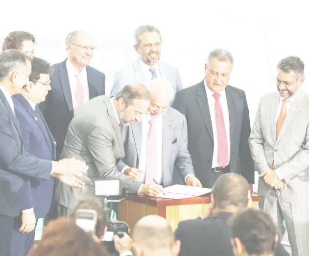 Silveira. A proposta prevê R$ 165 bilhões em geração hidroelétrica, eólica, solar e de biomassa. Segundo o governo, a proposta pode gerar até 400 mil empregos com os investimentos privados. Para que isso seja viabilizado, a MP, segundo o governo, permite adequação de prazos de projetos de geração de energia limpa e renovável ao cronograma de implantação das linhas de transmissão. Os empreendimentos de energia renováveis poderão acrescentar até 34 gigawatts (GW) de potência ao Sistema Interligado Nacional (SIN). n Presidente Lula assinou a MP em solenidade, na manhã de ontem, no Palácio do Planalto