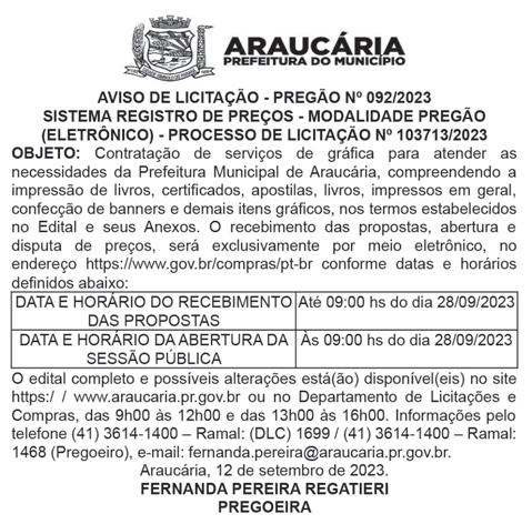 Editora Jornal do Ônibus grupor3a.com 10 Curitiba, quarta-feira, 13 de setembro de 2023 - edição 4.203 Publicidade Legal DE CURITIBA Publicação de editais, atas e balanços? Entre em contato no tel.: (41) 3263-2002 DE CURITIBA