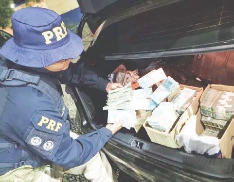 Agentes da Polí cia Rodoviária Federal (PRF) prenderam um homem que transpor tava R$ 2,5 milhões em dinheiro a bordo de um carro de passeio. Se gundo a assessoria do órgão, o condutor, cujo nome não foi divulgado, não soube informar a origem da quantia e foi detido por suspeita de lavagem de dinheiro.
