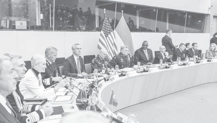 ministros da defesa dos países membros da organização do tratado do atlântico Norte (otan) se reuniram ontem em Bruxelas, na Bélgica, para tratar de questões relacionadas à defesa da Ucrânia.