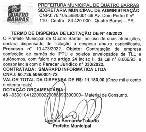 O deputado Luiz Clau dio Romanelli (PSD), primeiro secretário da Assembleia Legislativa do Paraná, e o presiden te da AMP (Associação dos Municípios do Para ná) e prefeito de Jesuítas, Júnior Weiller (MDB), oficializaram nesta ter ça-feira (11) o convênio para o Desenvolve Para ná – Governo 5.0. O even to, realizado pela AMP, com apoio do Sebrae e Governo do Estado, será no Hotel Rafain Palace, em Foz do Iguaçu, de 16 a 18 de novembro e deve reunir pelo menos três mil pessoas, entre pre feitos, secretários, verea dores e gestores das 399 cidades do Paraná.