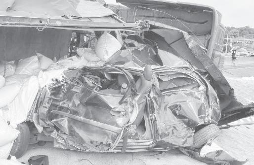 nha em seguida não conseguiu fr ear, momento em que colidiu nos carros que já estav am parados. O primeiro veículo, onde estava um homem, ficou encoberto pela carga da carreta. Ele foi retirado em estado grave do local do acidente e conduzido para um hospital da região. O motorista da carreta e os ocupantes dos outros veículos não se feriram. n