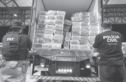 de um caminhão que transportava frango congelado. Estima-se um prejuízo de cerca de R$ 2,5 milhões ao crime organizado. O homem disse que levaria a maconha até o Estado de São Paulo. As investigações seguem a fim de identificar e prender outros envolvidos na organização criminosa. n