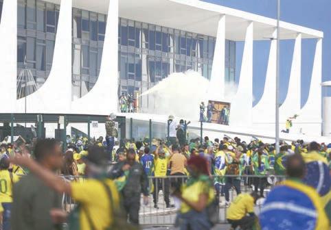No dia 8 de janeiro, as sedes dos Executivo, Legislativo e Judiciário (Palácio do Planalto, Congresso Nacional e STF) foram invadidas e depredadas por golpistas insatisfeitos com o resultado das eleições presidenciais de 2022. n