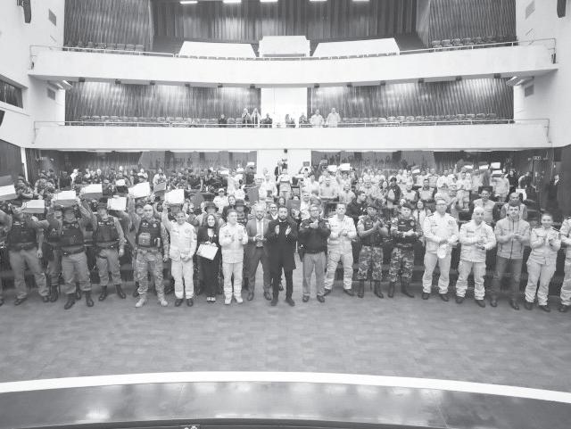 O proponente da sessão solene e presidente da Comissão de Segurança Pública da Assembleia Legislativa, deputado Soldado Adriano José (PP), justificou a homenagem oferecida às Forças da Segurança Pública”. n
