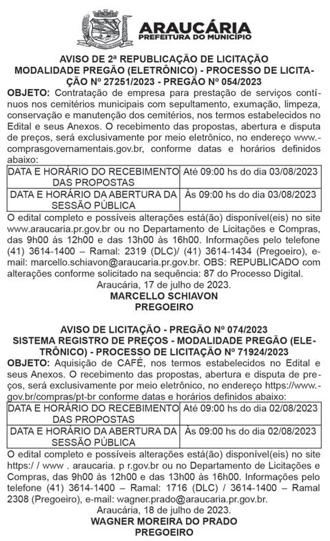 grupor3a.com Publicidade Legal 9 Editora Jornal do Ônibus Curitiba, quarta-feira, 19 de julho de 2023 - edição 4.165 DE CURITIBA