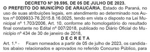 julho, conforme estipulado no Edital. Confira o horário, documentos necessários e os nomes convocados acessando o Diário nº 2474 nes-
