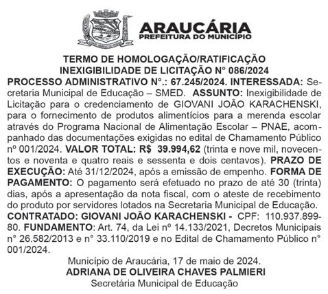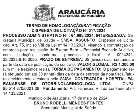 A Prefeitura de Campo Largo, por meio da Secretaria Municipal de Administração, divulga respectivamente, por meio do Diário Oficial nº 2675, publicado na última quarta-feira (15), os Editais de Convocação nº 045/2024, 047/2024, 048/2024 e 049/2024, com os profissionais aprovados para trabalharem na saúde municipal.