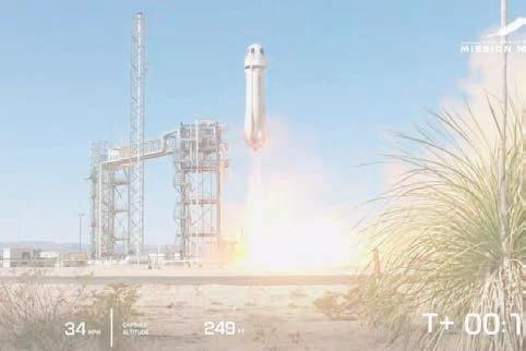 A nave New Shepard, da Blue Origin, empresa de foguetes do bilionário Jeff Bezos, decolou ontem com seis tripulantes da cidade de Van Horn, no Texas. O lançamento aconteceu às 11h36 e durou 10 minutos. Batizada de NS-25, a missão foi um sucesso e marcou o retorno de missões tripuladas com a nave New Shepard. O último voo tripulado da Blue Origin havia sido em agosto de 2022. Um mês depois, um foguete da empresa caiu por conta de uma falha logo após o lançamento. A nave não estava tripulada e não houve feridos, segundo a companhia. Um novo voo só foi feito em dezembro de 2023, ainda sem passageiros. Com o lançamento de ontem, a Blue Origin realizou a sua sétima missão tripulada. n