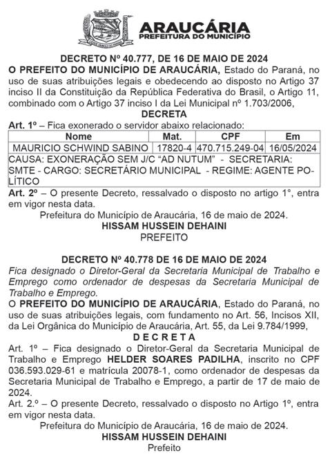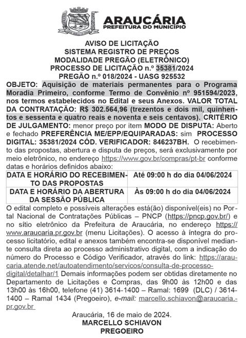 A Secretaria Municipal de Finanças de Araucária (SMFI) informa que a guia de pagamento do ISS Fixo e do Alvará (taxa de verificação e funcionamento regular), relativos ao ano de 2024, já está disponível no site da Prefeitura (www.araucaria.pr.gov.br) ou por meio de atendimento presencial no Espaço Cidadão (rua Pedro Druszcz, 111, Centro). A data do vencimento é 28 de junho. Conforme a SMFI, a taxa de Verificação e Funcionamento Regular tem pagamento